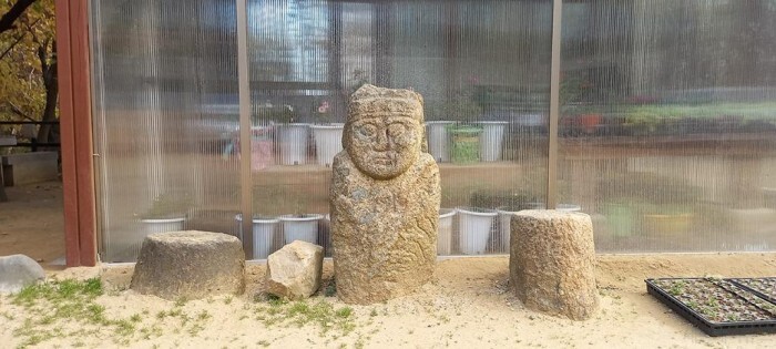 사찰에 석조물 중에 석인상인지 불상인지 나의 안목으로는 알수 없는 석상이 큰 눈으로 오가는 사람을 맞이하는 듯하다.